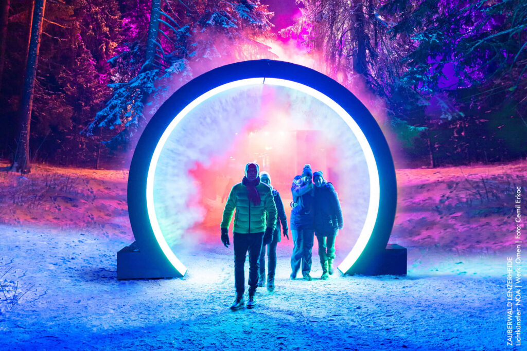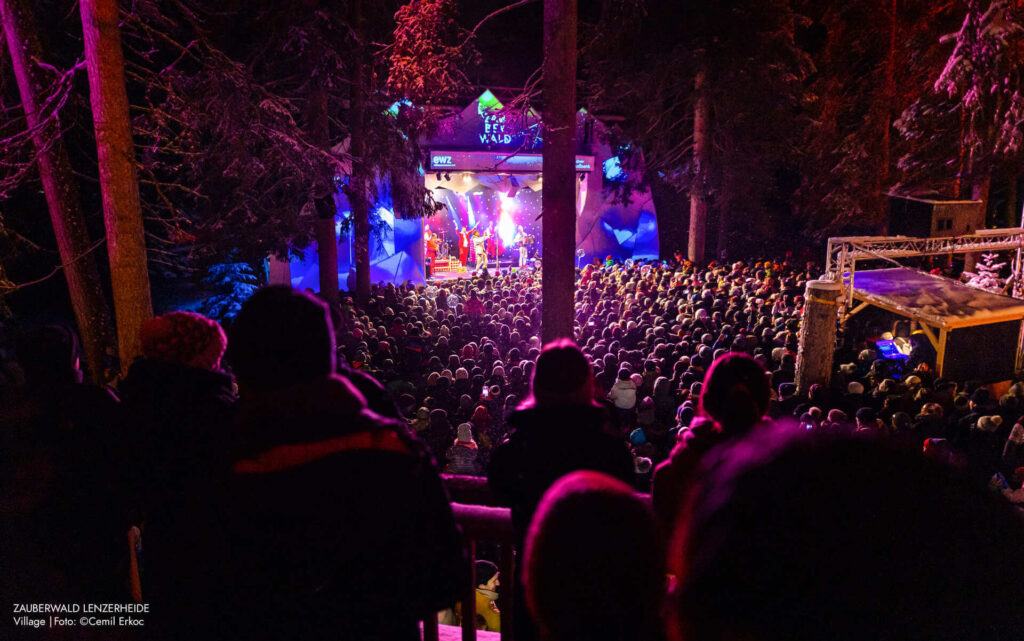 Der Zauberwald Lenzerheide verwandelt den winterlichen Wald vom 12. – 30. Dezember in eine einzigartige Mischung aus Lichtkunst, Musik und Kulinarik. Besucher spazieren durch Lichtinstallationen und geniessen gleichzeitig Konzerte sowie regionale Spezialitäten in kuscheliger Atmosphäre. Ein magisches Erlebnis, das Winterromantik in die Schweizer Berge bringt.