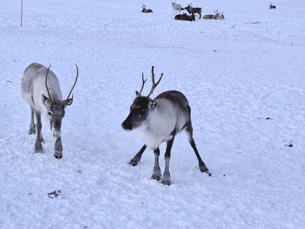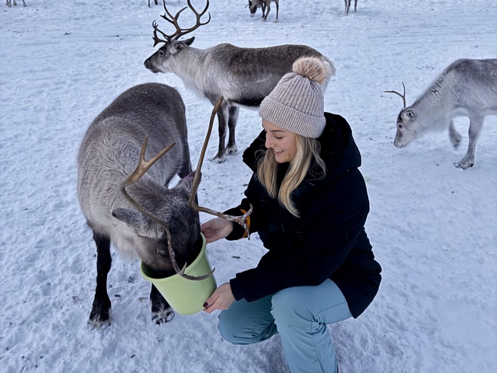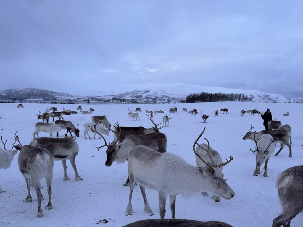 Mein absolut überteuertes, aber dennoch Lieblings-Highlight der Reise nach Tromsø ist der Besuch einer Rentierfarm. Die Einführung in die Kultur und den Lebensstil der Samis – des indigenen Volkes Nord-Skandinaviens – ist spannend, doch insgeheim freue ich mich vor allem darauf, die unzähligen Rentiere aus nächster Nähe zu sehen und zu füttern. Für 140 Franken bekommt man das volle Programm: Führung, Schlittenfahrt und eine Portion Suppe. Die Rentierfleisch-Suppe lasse ich allerdings bewusst aus. Das wäre mir dann doch eine Spur zu makaber.