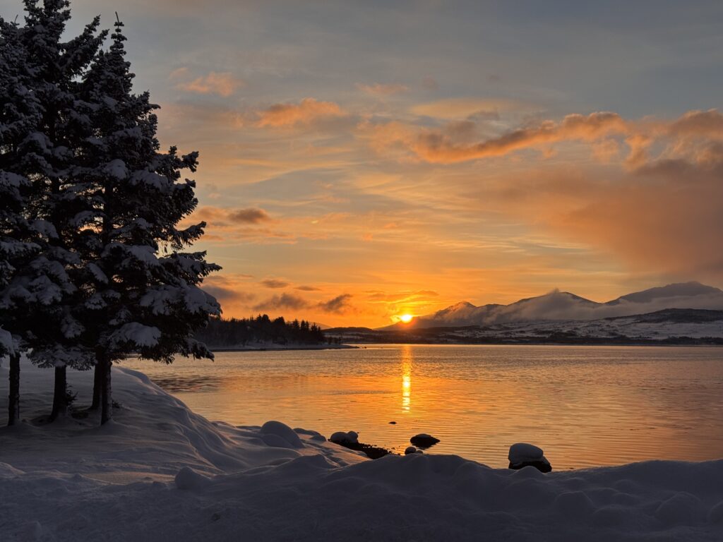 Die norwegische Küste ist nicht nur für Nordlichter, sondern auch für ihre beeindruckenden Fjorde bekannt. Doch im Winter verabschiedet sich die Sonne hier für mehrere Monate fast vollständig. Aktuell geht sie gegen 11 Uhr auf – und bereits um 13:30 Uhr wieder unter. Während unserer fünf Tage in Tromsø zeigt sie sich nur ein einziges Mal. Genau diesen seltenen Moment nutzen wir für eine Fjordtour und besuchen einige eindrucksvolle Orte, an denen die Naturgewalten des Nordens perfekt zur Geltung kommen. Den Sonnenuntergang erwischen wir gerade noch – ein kurzer, aber magischer Augenblick.