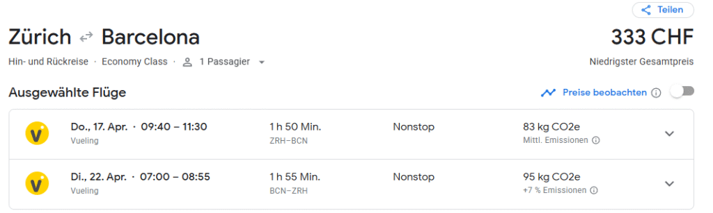 Flüge nach Barcelona und zurück kosten über die Feiertage um die 350 Franken.