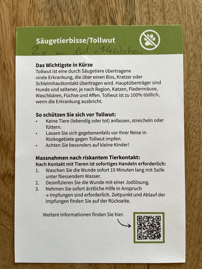 Gewisse Impfungen bestehen aus mehreren Dosen, die Wochen oder gar Monate auseinanderliegen müssen. Im Fall von Hepatitis A und B sind es mindestens 6 Monate. Also genügend früh informieren und Impftermine planen! Wenn aber alle Stricke reissen: Jannina hat sich in Bangkok noch impfen lassen, und das hat reibungslos funktioniert. Bonus: Die Impfstoffe sind günstiger als in der Schweiz.