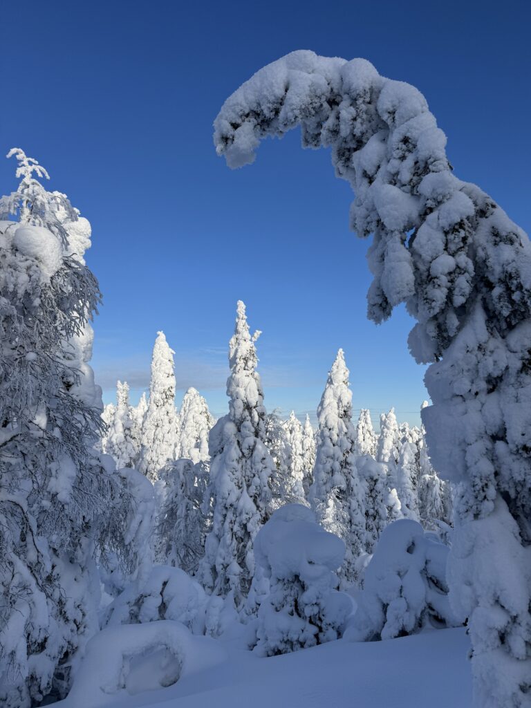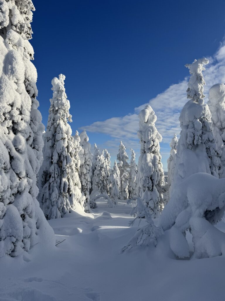 Genau diese surrealen Schneeskulpturen entstehen vor allem auf den höher gelegenen Hügeln in Regionen wie Ruka oder im Riisitunturi-Nationalpark. Durch Wind, Feuchtigkeit und extreme Kälte lagert sich Schnee über Wochen an den Bäumen ab – bis sie aussehen, als kämen sie direkt aus einem Märchenfilm. Und genau deshalb war meine Entscheidung eigentlich ziemlich schnell gefallen: Ich wollte diese Landschaft unbedingt sehen. Also wurde es Lappland im Süden – rund um Kuusamo und Ruka.