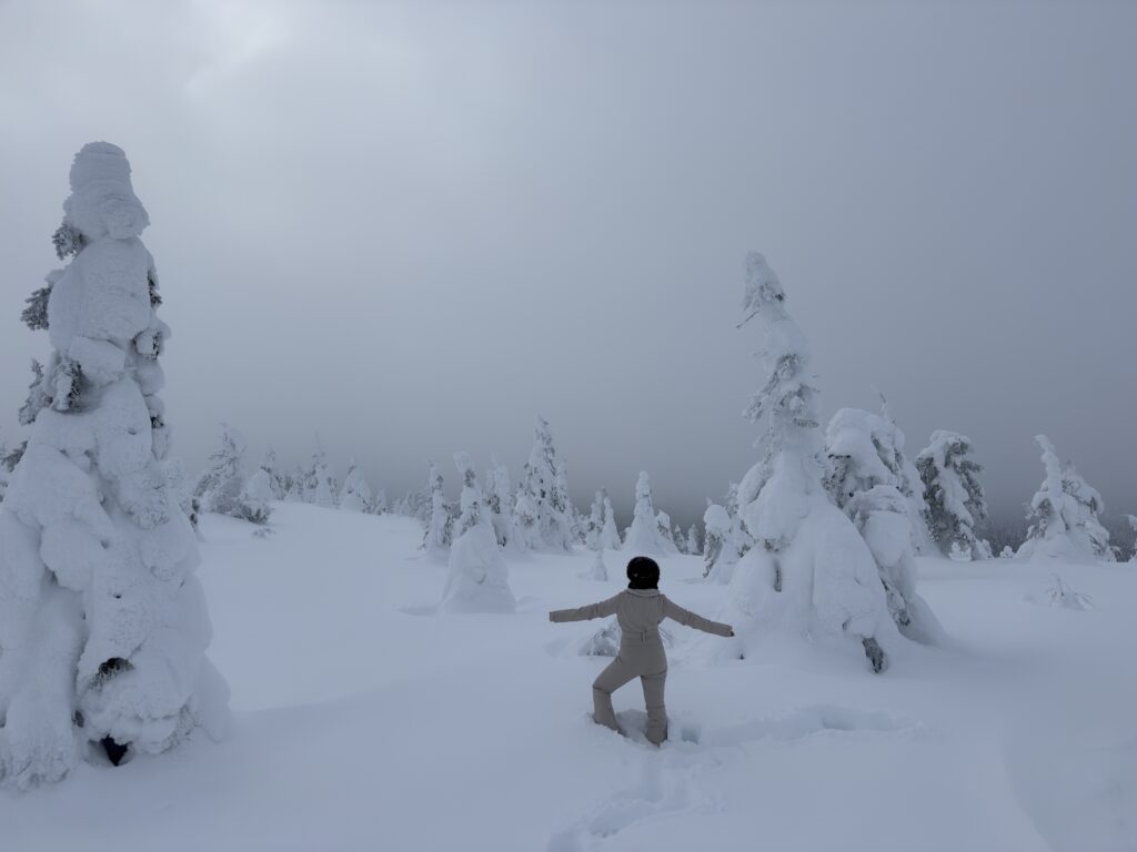 Ich habe mich dabei erwischt, wie ich einfach nur herumgeschaut habe und ständig dachte: „Das kann doch nicht echt sein.“ Und natürlich habe ich ungefähr alle fünf Minuten mein Handy rausgeholt. Noch ein Foto. Noch eine verschneite Form. Noch eine andere. Irgendwann habe ich auf mein Handy geschaut und musste lachen: Meine Camera Roll besteht jetzt einfach nur noch aus zwei Dingen: Schnee. Und diese surrealen Schneebäume im Wald. Aber ganz ehrlich: Man kann gar nicht anders. Diese Landschaft ist einfach komplett verrückt. Irgendwann merkt man übrigens: Das Sprichwort „Man sieht vor lauter Bäumen den Wald nicht mehr“ stimmt hier wirklich.